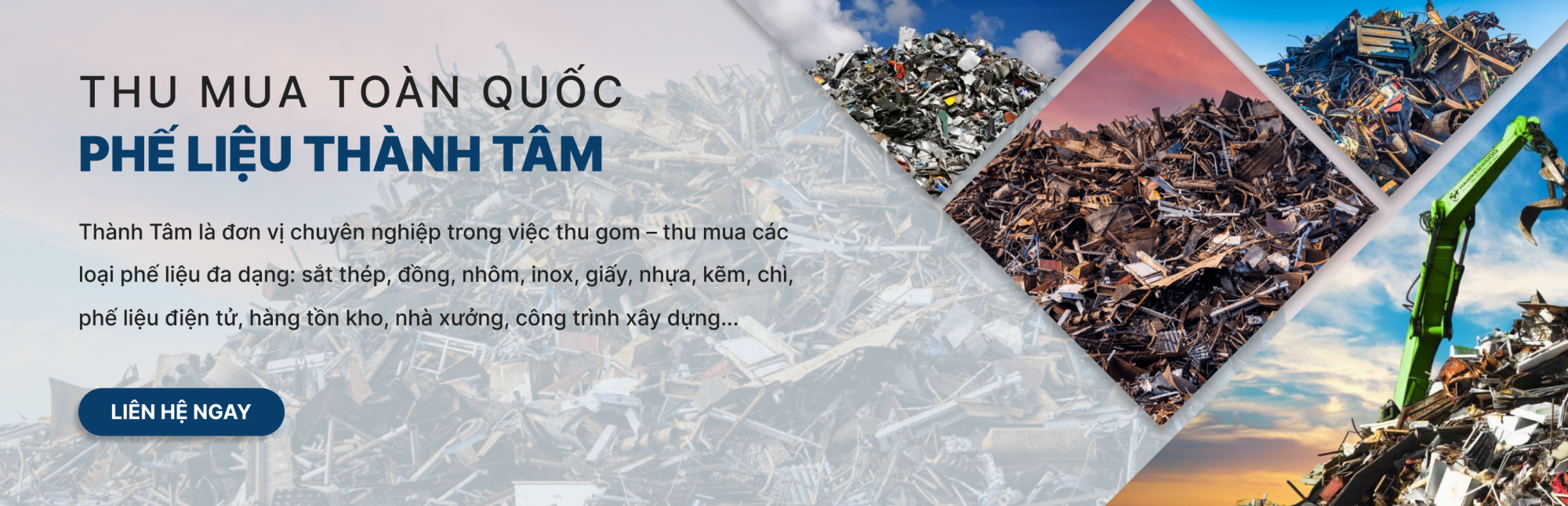 Thành Tâm là đơn vị chuyên nghiệp trong việc thu gom, thu mua các loại phế liệu đa dạng: sắt thép, đồng, nhôm, inox, giấy, nhựa, kẽm, chì, phế liệu điện tử, hàng tồn kho, nhà xưởng, công trình xây dựng...